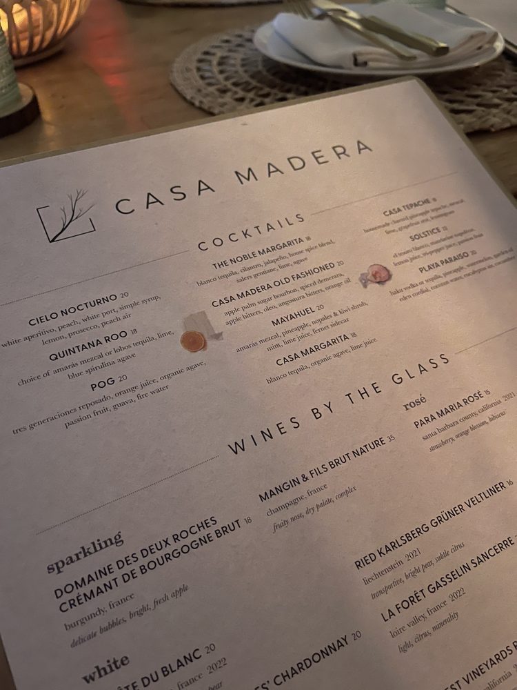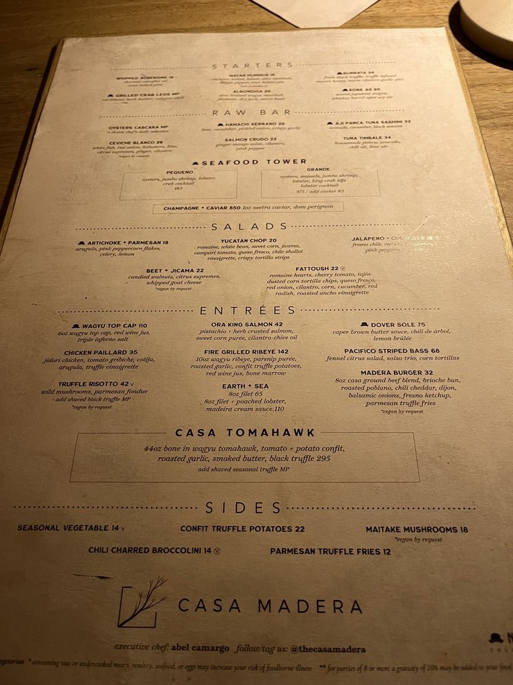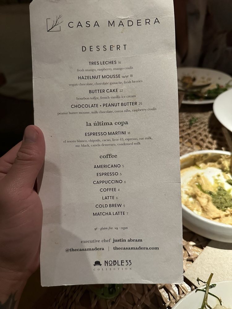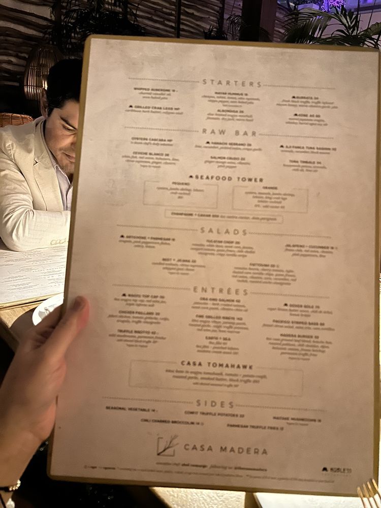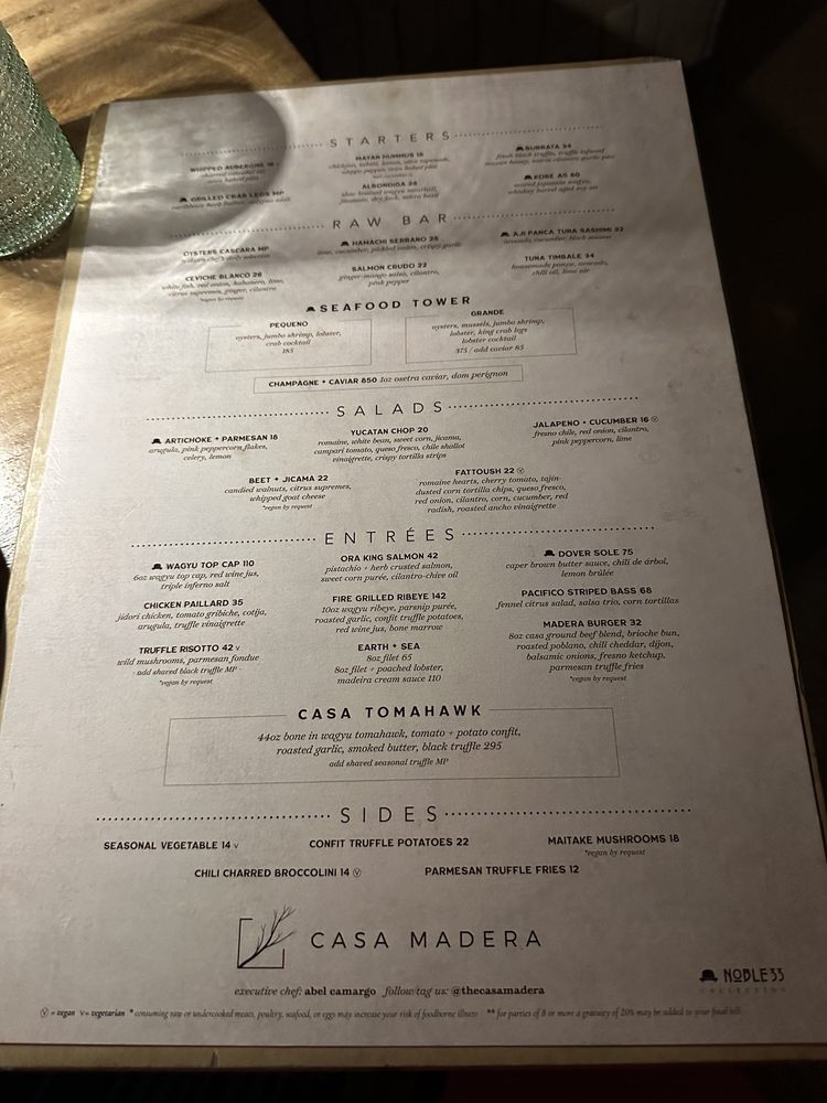 Introducing the menu at Casa Madera - West Hollywood, a trendy and classy dining spot on Sunset Blvd. The restaurant offers a variety of options including vegan dishes and has amenities like valet parking and outdoor seating. Customers rave about the beautiful ambiance and excellent service. The burrata with truffle honey and chile is a must-try, as well as the wagyu tacos and hummus. Happy hour specials are a hit, with fantastic deals and a lively atmosphere. The hand fans provided add a touch of charm to the dining experience. Overall, Casa Madera offers a unique blend of urban chic and tropical tranquility, making it a hidden gem in LA. Be sure to enjoy the delicious food and captivating ambience on your next visit.